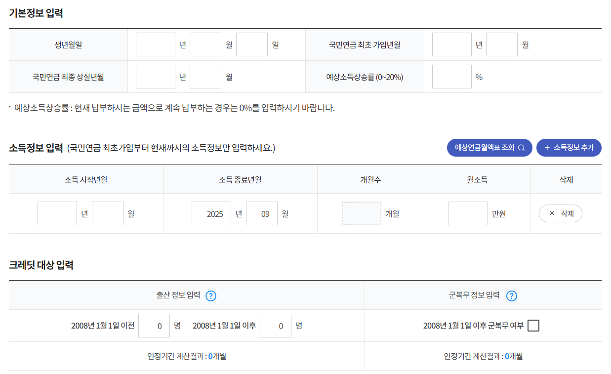 아래 필수입력 사항을 대략적으로 입력하면 나의 연금액이 확인 가능합니다.