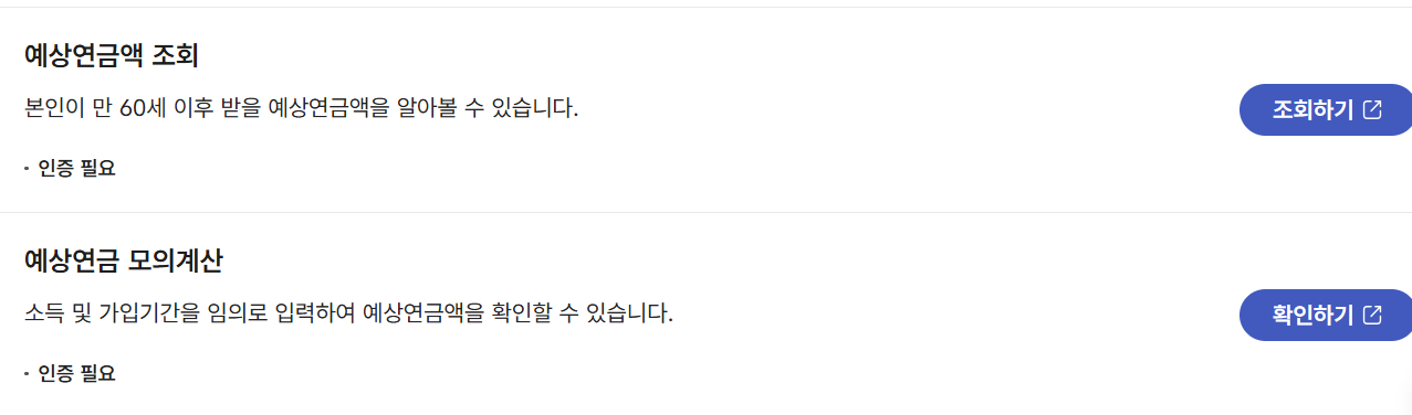 인증이 귀찮다면 아래 두개 메뉴중에 예상연금액 조회는 대략적인 나의 연금액 조회가 가능합니다.